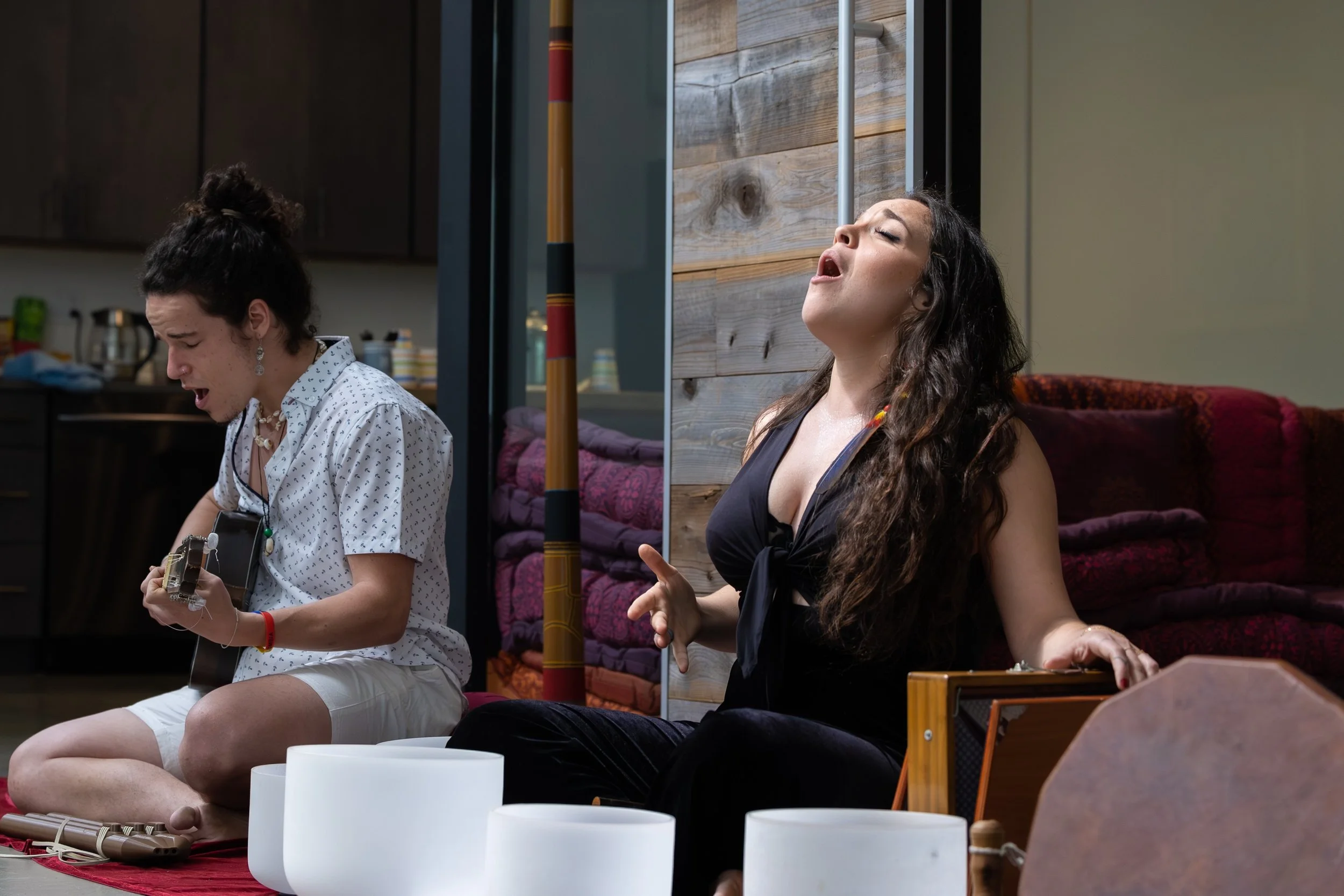 I have been blessed to travel the world, sharing the healing power of sound at wellness centers, rehab facilities, retreats, and events across the globe. With the use of sound, vibrational frequency, and vocal resonance, my sound healing sessions combine various techniques and instruments—including voice, Tibetan bowls, crystal bowls, drums, and bells—to create frequencies that entrain your brainwaves and slow down your nervous system, promoting deep relaxation, restoration, and healing for both body and mind.